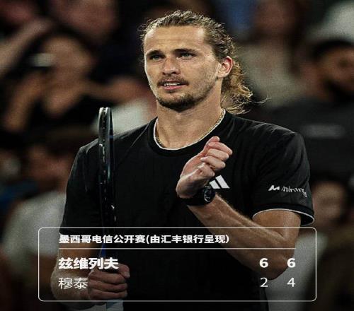 2026年ATP500阿卡普尔科站男单首轮,赛会头号种子兹维列夫仅耗时73分钟便以6-2 6-4横扫法国球员穆泰,携对阵后...
