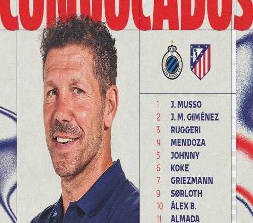 北京时间2月17日,马竞官方发布欧冠淘汰赛附加赛首回合客战布鲁日的大名单,阿尔瓦雷斯、格列兹曼在列,冈萨雷斯...