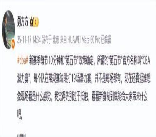 “江南的城”老师则连发2条动态,表达了自己的质疑,“潜力赛啊哈哈哈哈,职业篮球联赛还有第五节,下下赛季再加个第六节做完广播体操。”