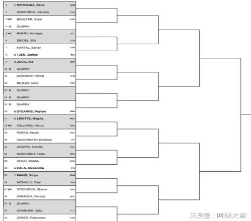 奥克兰赛首轮即有多场焦点战:中国选手王欣瑜作为7号种子迎战麦克纳莉,美国名将大威将对阵5号种子里内特,4号种子伊埃拉则将与维基奇展开交锋。