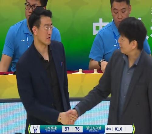 赢了广厦队足足21分!山东队带走了100万奖金,主教练邱彪,也是非常满意这个结果,看看,邱彪满面笑容呀!哈哈!