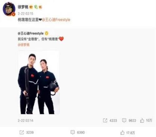 王心迪在微博的告白与徐梦桃的回应。图源:徐梦桃微博截图