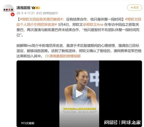 此外,关于郑钦文取关功勋教练佩雷里巴一事,中国一姐也在印第安维尔斯首次开口,进行了正面回应。