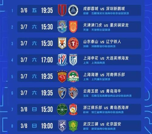 新赛季中超今晚揭幕9队负分开局_24直播网