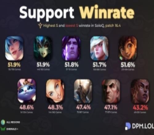 体育资讯3月7日称 英雄联盟下路单排胜率:辅助最高琴女,AD最高大嘴。