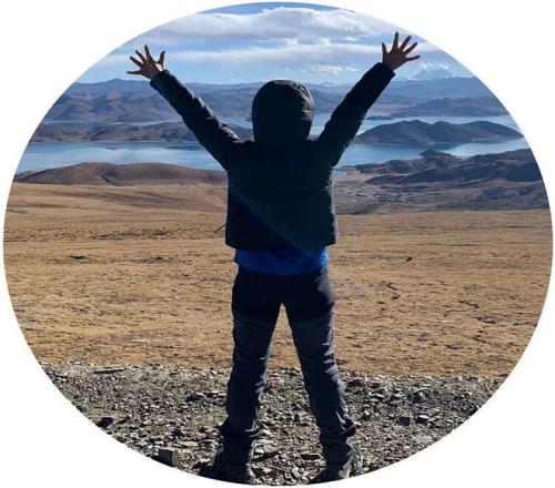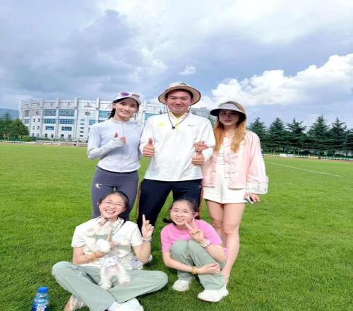 李美珍在丽江体育场和唐宝军及其家人合影