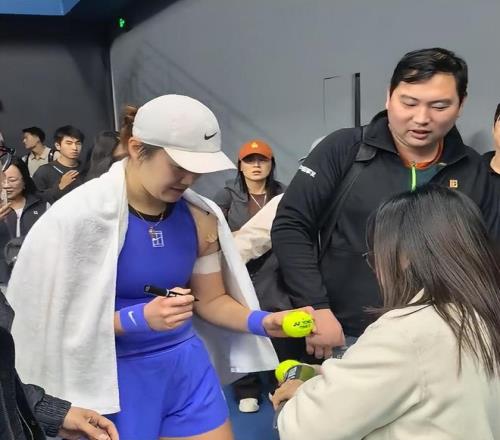 王曦雨在赢球之后看到母亲在场边,她一路小跑过去,和母亲拥抱在一起,享受这幸福时刻。王曦雨随后不停地给身边的人签名,母亲将毛巾披在了王曦雨身上,担心刚刚打完比赛,出了一身汗的王曦雨着凉。